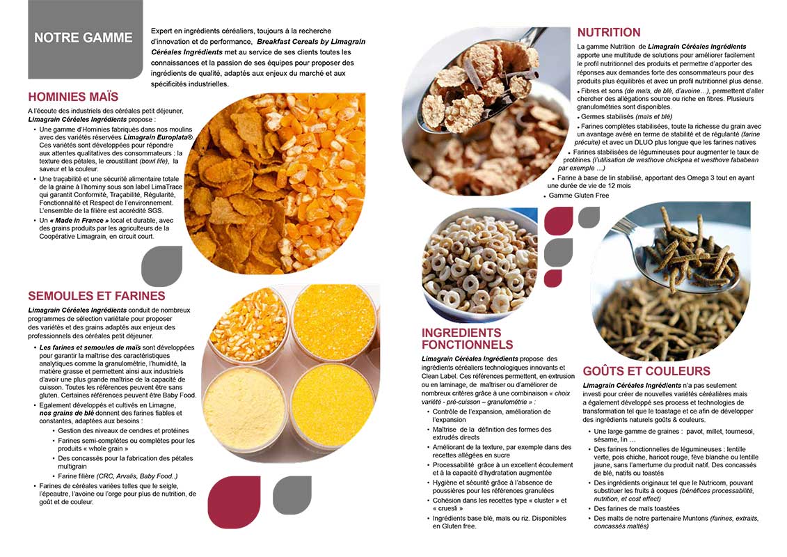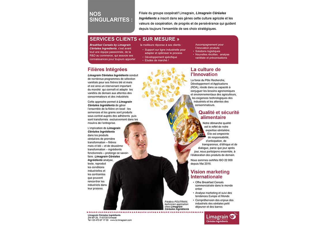 Information leaflets about LCI’s products form a major part of the sales teams presentations. The idea of creating information sheets (argumentaires in French terminology) around business areas (bakery, ready meals, snack foods etc.) was developed. Colour co-ordination was used for differentiation.