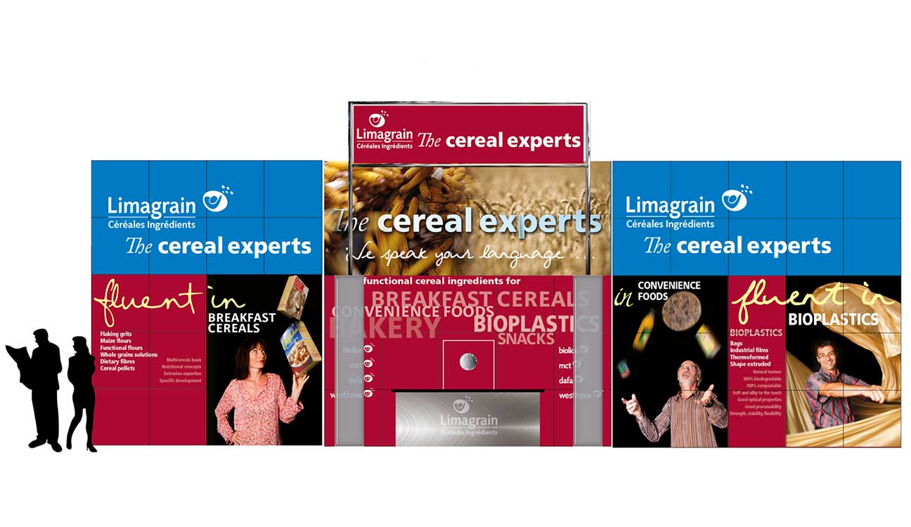 The corporate identity development has enabled a strong brand awareness to be created that in turn allows for strong, dramatic graphics. This approach gives their stands visual strength, high recognition and “come and visit me” appeal